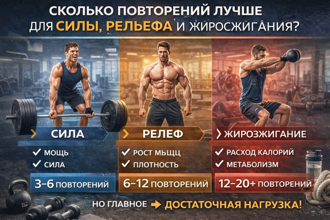 👉 Для силы — 3–6 повторений